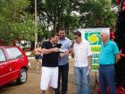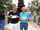 Representantes da ACE-Matão, Prefeitura, Yamaha Piva Motos e Fiat Santa Emília no sorteio realizado na Praça ‘Dr. Leônidas Calígola Bastia’, no Centro